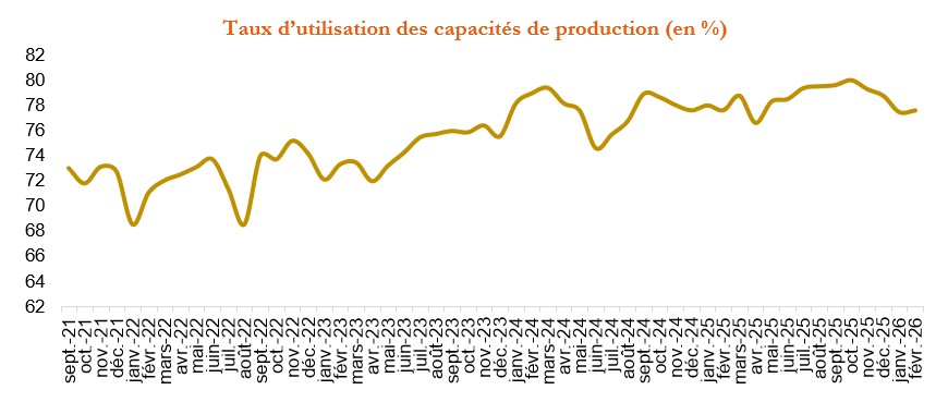 L’enquête de conjoncture de Bank Al-Maghrib au titre du mois de février fait ressortir une amélioration de l’activité. Ainsi, la production et les ventes ont progressé et le Taux d’Utilisation des Capacités de production (TUC) se serait situé à 78%.