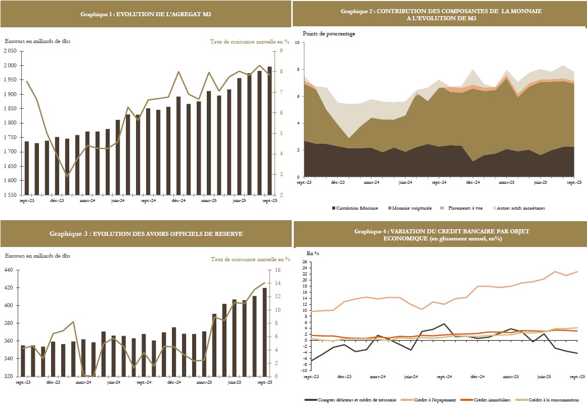 En septembre 2025, la masse monétaire a marqué une progression annuelle de 7,8% après 8,3% en août. Cette évolution traduit principalement :